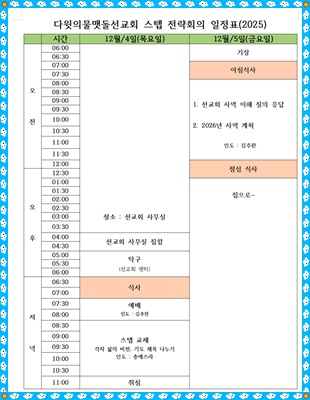 • 2026년 사역을 위한 스텝 전략회의 일정 2025.12.1.